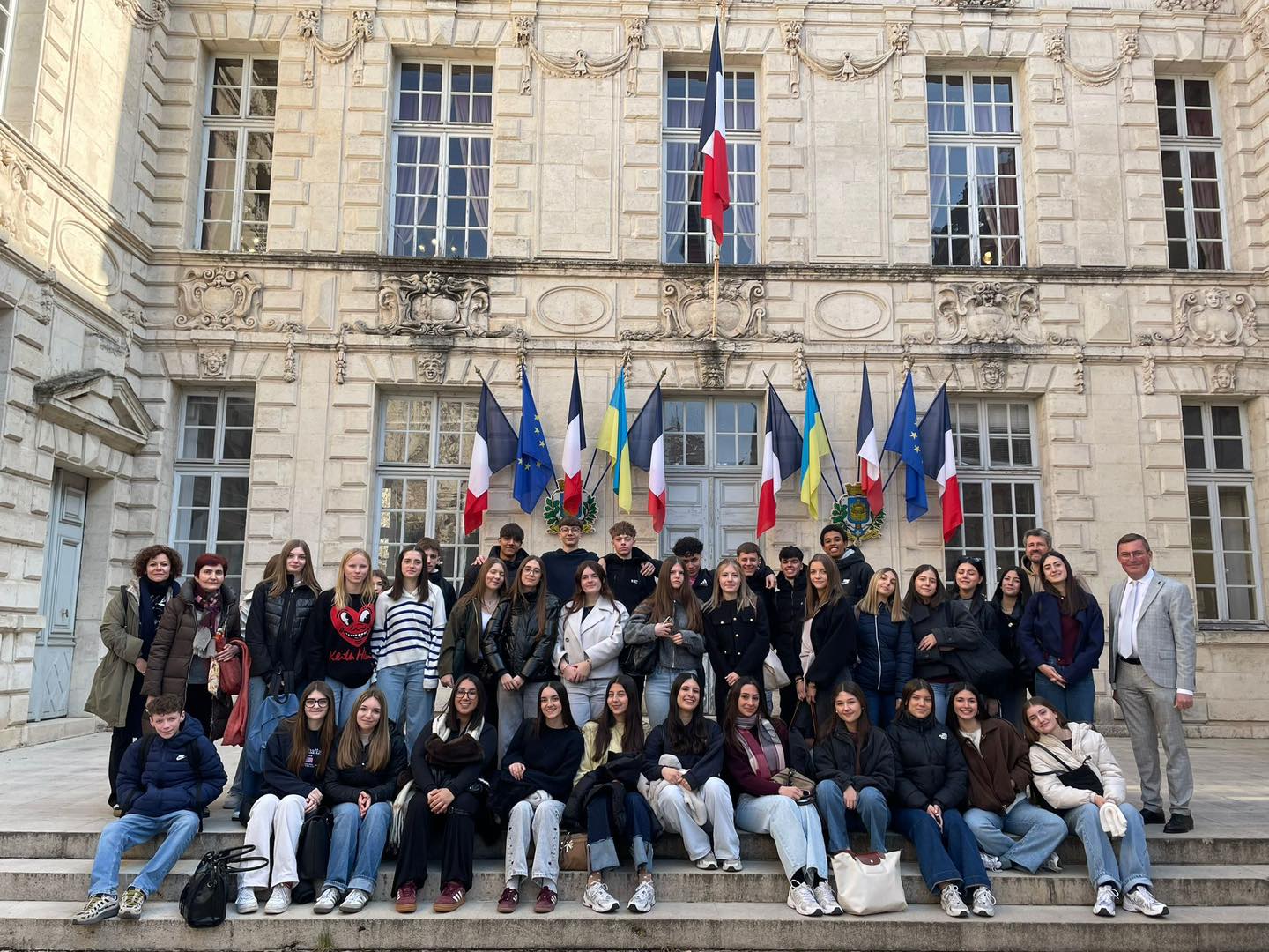 La matinée a débuté par un accueil convivial autour d’un petit-déjeuner à la cantine, en présence de M. le Proviseur. Nous avons ensuite eu l’honneur d’être reçus à la mairie de Verdun par M. le Maire, un moment fort marqué par de beaux échanges entre jeunes Européens